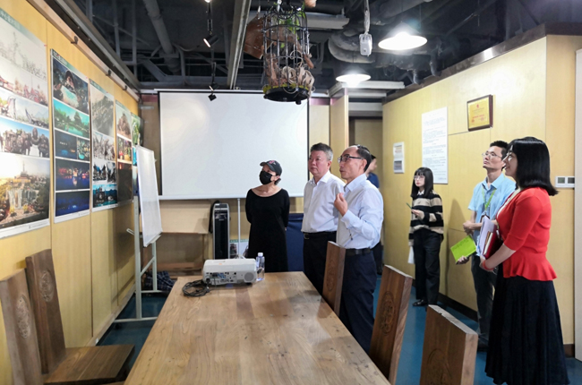 公司臨時(shí)黨委書(shū)記、董事長(zhǎng)洪繼元(左二)現(xiàn)場(chǎng)聽(tīng)取公司助理總裁、規(guī)劃設(shè)計(jì)院院長(zhǎng)陳偉元(左三)匯報(bào)
