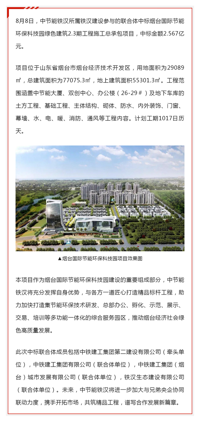 喜報(bào) | 鐵漢建設(shè)參與的聯(lián)合體中標(biāo)煙臺(tái)國(guó)際節(jié)能環(huán)??萍紙@綠色建筑2.3期工程施工總承包項(xiàng)目