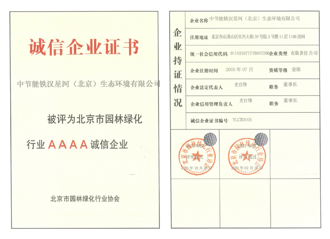 “誠信企業(yè)”是北京市園林綠化行業(yè)為提高園林綠化企業(yè)的綜合素質(zhì)、樹立良好形象,提高在社會(huì)活動(dòng)中的誠信度,增強(qiáng)企業(yè)的守法和信用意識(shí)而建立起的重要行業(yè)標(biāo)準(zhǔn)。誠信企業(yè)評(píng)定是企業(yè)招投標(biāo)、施工、評(píng)優(yōu)的重要參考,也是對鐵漢星河在園林綠化領(lǐng)域經(jīng)營成果與綜合實(shí)力的高度認(rèn)可和肯定,彰顯了鐵漢星河誠信精工的企業(yè)形象和品牌影響力。